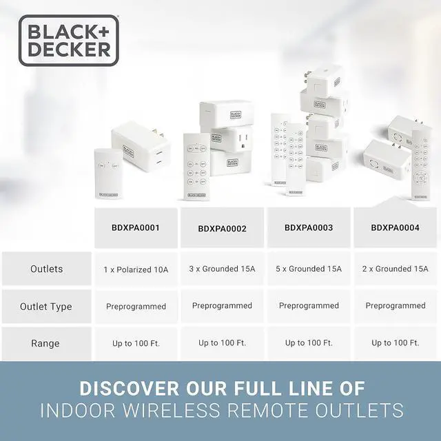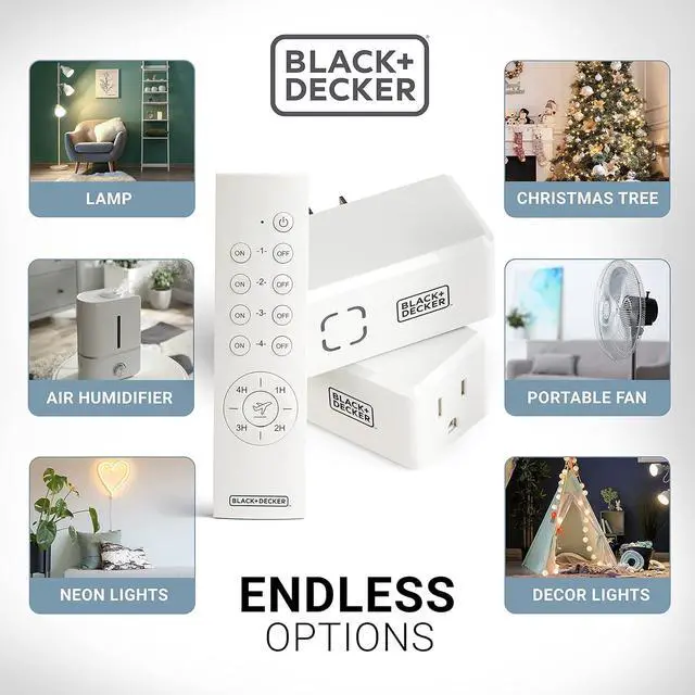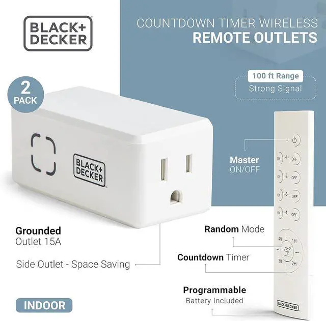 Control Your Home: Control your appliances anywhere in your home with this Wireless Outlet Remote Timer Pack from Black + Decker! With 1 remote control for 2 outlet plugs, this is the perfect way to use any device with the push of a button.
