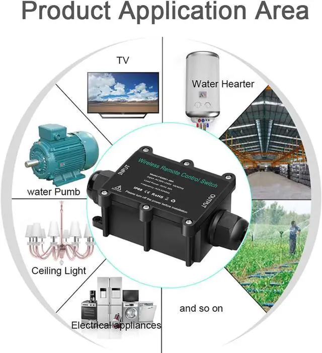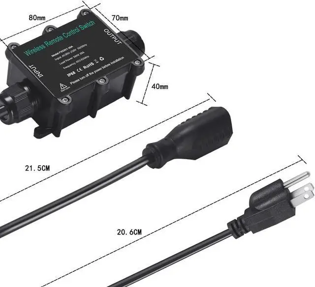 (High power): This 30 amp remote control outlet, 70% safe use is recommended (for example, if your equipment is less than 2200W in the United States or less than 4400W in the European Union, the switch will work normally)