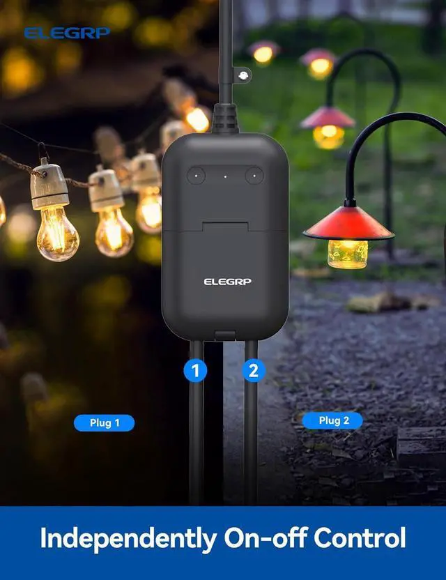 Smart APP & Voice ControlCompatible with Alexa and Google Assistant. Enjoy the hands-free convenience of controlling any outdoor electronic appliances with your voice via Alexa or Google Assistant. Turn electronics on and off from anywhere with your smartphone using the ELEGRP app, whether you are at home, in the office or on vacation.