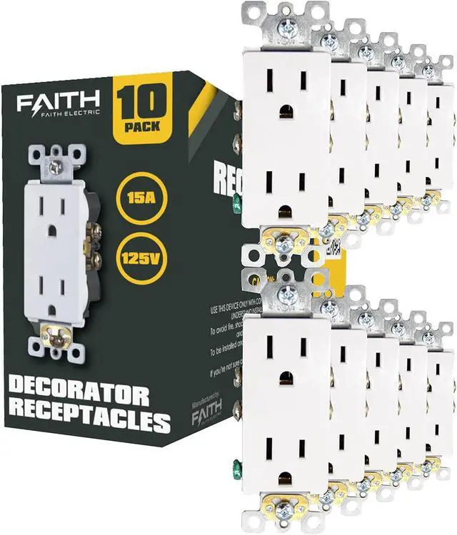 : 10 Pack of white outlets. Electrical rating 15A/125V/5-15R/2-Pole/3-Wire. UL and cUL Listed.