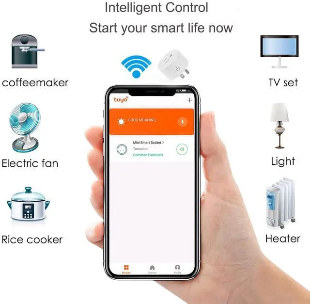 No hub or subscription required, simply plug your electrical appliances into smart outlet and connect to Smart Life APP/Tuya APP under a secured 2.4GH z Wi-Fi network