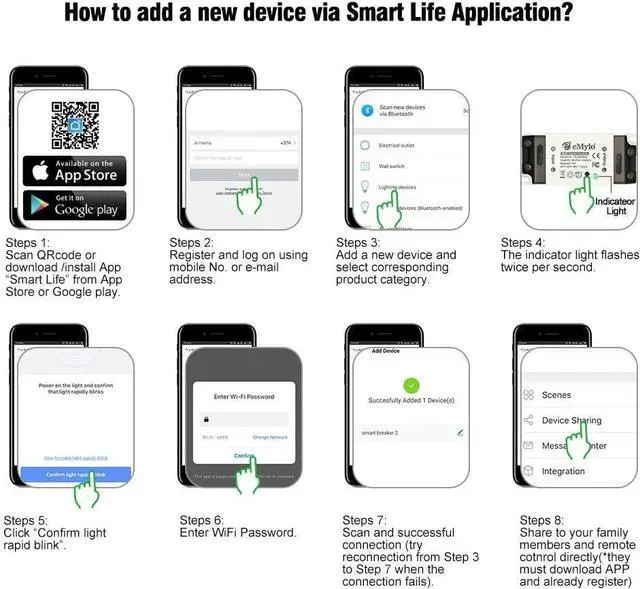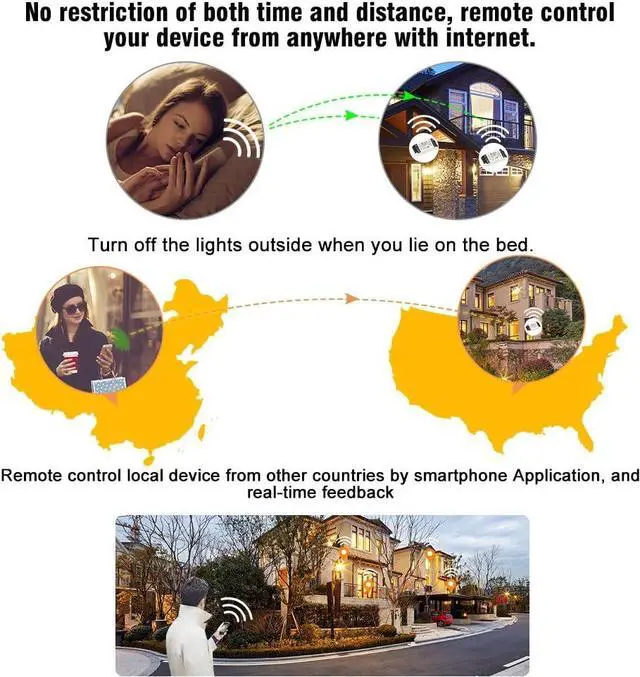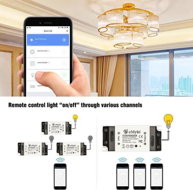 Remote Control Switch ---- Connect with home Wi-Fi without hub required. Remotely turn on/off light or other appliances with smartphone App " Smart Life" or " Tuya" anywhere at any time as long as your phone has network. Perfect for input wide voltage AC 90-250V lamp, ceiling fan, floor light, Christmas tree, outdoor landscape lighting and other appliances not over 10Amp