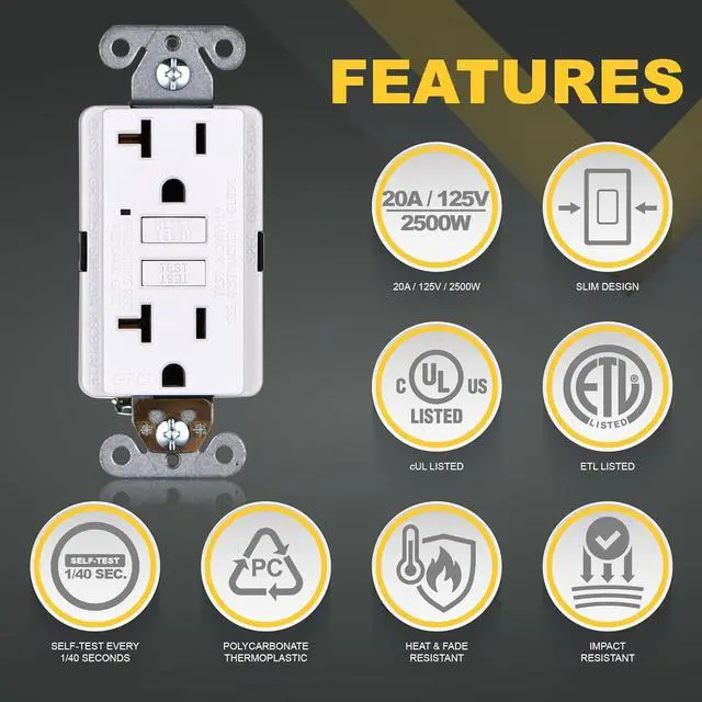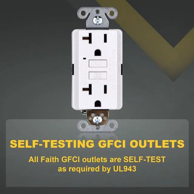 Auto-Test 20 Amp GFCI Outlet To ensure continuous protection against ground faults the GFCI outlet conducts automatic self-tests Install in your bathroom kitchen garage and basement