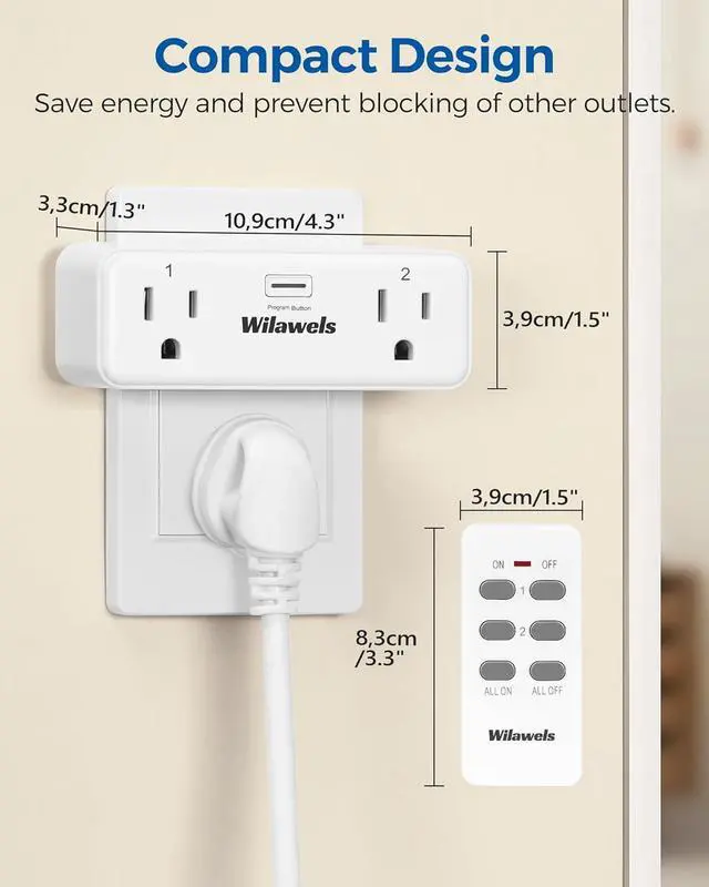 Mini Outlet: This compact outlet converts a standard outlet into two smart sockets without taking up extra space. The 2 outlets can be controlled separately with one remote and will not interfere with each other' s frequency, ensuring stable and reliable connections