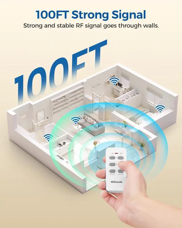 100FT RF Range: The wireless remote control outlet provides a stable and strong signal that can traverse walls and control your home appliances from anywhere within its signal range. Its remote operation is especially valuable for the elderly or physically challenged individuals, eliminating the trouble of moving around