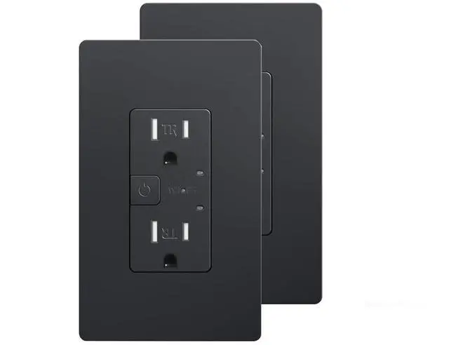 SMART IN-WALL OUTLETS: This wifi outlet lets you control 2 plugged in devices from anywhere at the same time or individually. 120VAC 15A tamper-resistant duplex receptacle.