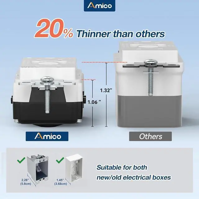Thinner Design: The thickness of this GFCI has been optimized to be 20% thinner than competitors, compatible with new and used electrical boxes, allows more space for wiring inside the electrical box, better heat dissipation