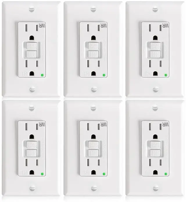 Weather Resistant: 15A 125V GFCI receptacle, withstand 20KV, 10KA voltage surge, weather resistant (WR), using advanced UV stabilization engineering, effectively prevent discoloration and aging; prolonged service life