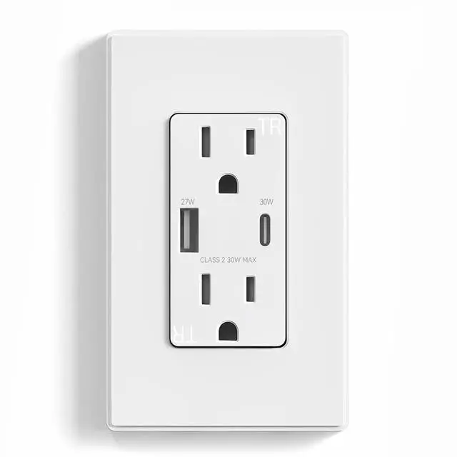 Durable Design Exquisite matte finish and frameless design looks best with today' s decors. Tough thermoplastic housing shrugs off impacts and scratches. Heavy duty design is made to last. Works with 12 or 14 AWG for back wiring. Replace an existing outlet in as short as 10 minutes. A screwless wall plate and complete installation instructions included. Compatible with all electrical boxes, decorative devices and wall plates. FCC certificated. UL and CUL listed.