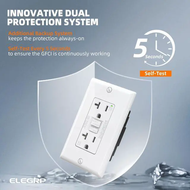 Patented Self-Test Every 5 Seconds This GFCI outlet automatically performs a self-test every 5 secondsfar more frequently than the UL standard of every 3 hoursto ensure it' s always ready to protect against electrical shock. In the event of a ground fault, it cuts power in just 0.025 seconds, providing fast and reliable safety for your home.