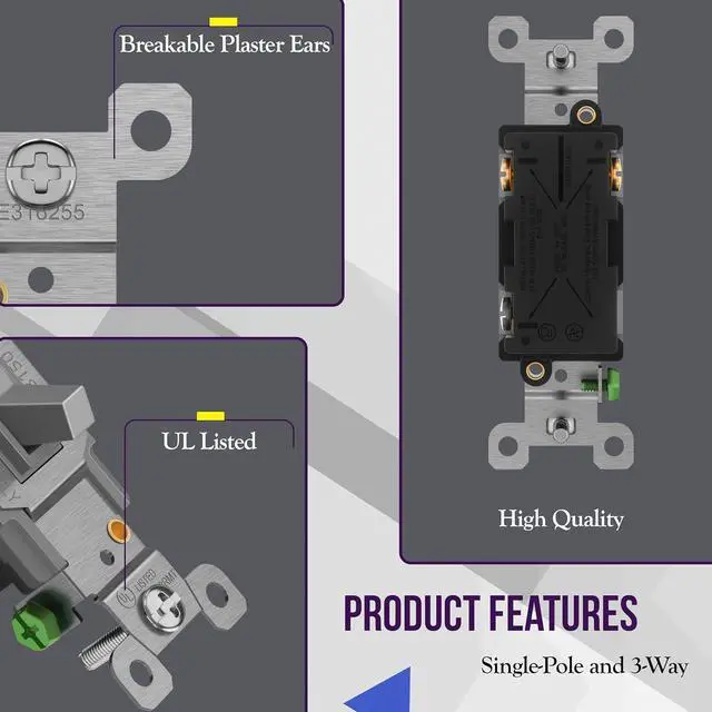 Residential grade On/Off toggle light switch is made of high-quality materials; impact resistant polycarbonate thermoplastic and solid steel.