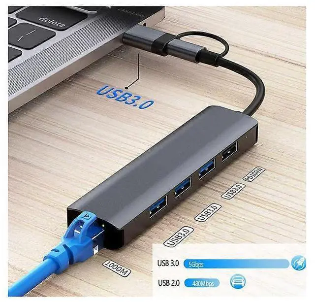 * **5-in-1 Multi-Functionality**: Transform a single USB-C port into a versatile docking station for internet, data transfer, and peripheral connectivity all at once.