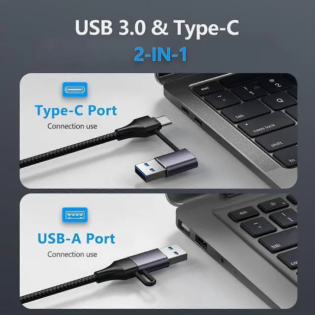 Dual USB-C/USB 3.0 connectors for universal compatibility with USB-A and USB-C devices