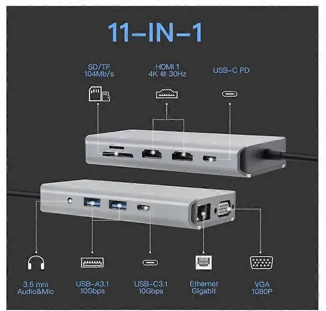Expand your laptop's connectivity with this compact 9-in-1 USB C Hub, featuring: