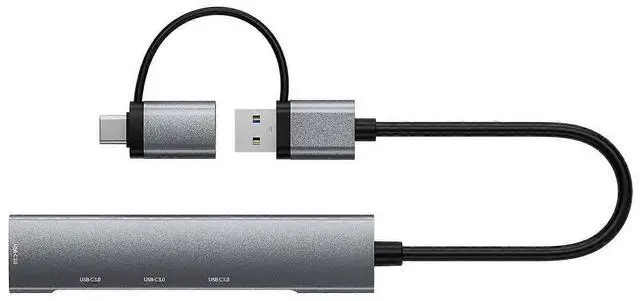 Expand your laptop's connectivity with this 4-port USB-C hub adapter, designed for seamless data transfer and device expansion.