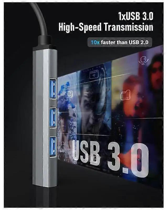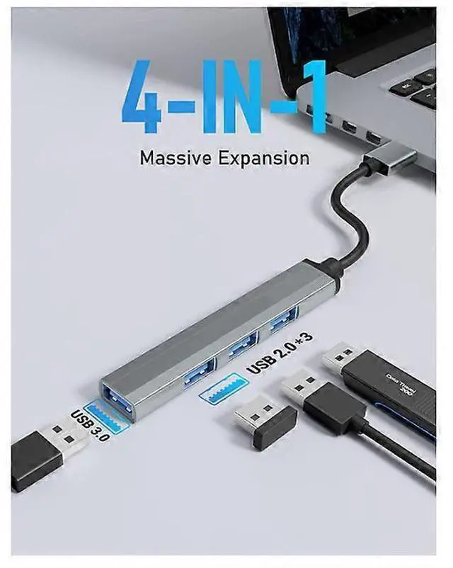 Expand your connectivity with this ultra-slim 4-port USB hub, featuring a versatile mix of high-speed and standard ports in a compact, portable design. Perfect for home, office, or travel use.