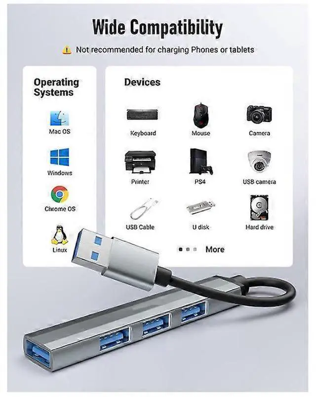 * **Wide Compatibility**: Connect keyboards, mice, printers, hard drives, flash drives, cameras, and more. No drivers neededtrue plug-and-play setup.