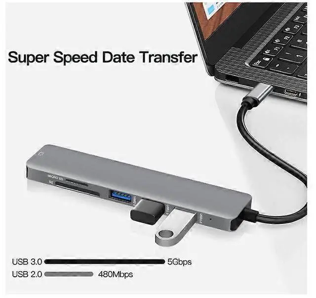 Upgrade your connectivity with this 6-in-1 USB C hub adapter, designed for seamless expansion of your USB-C laptop or phone.