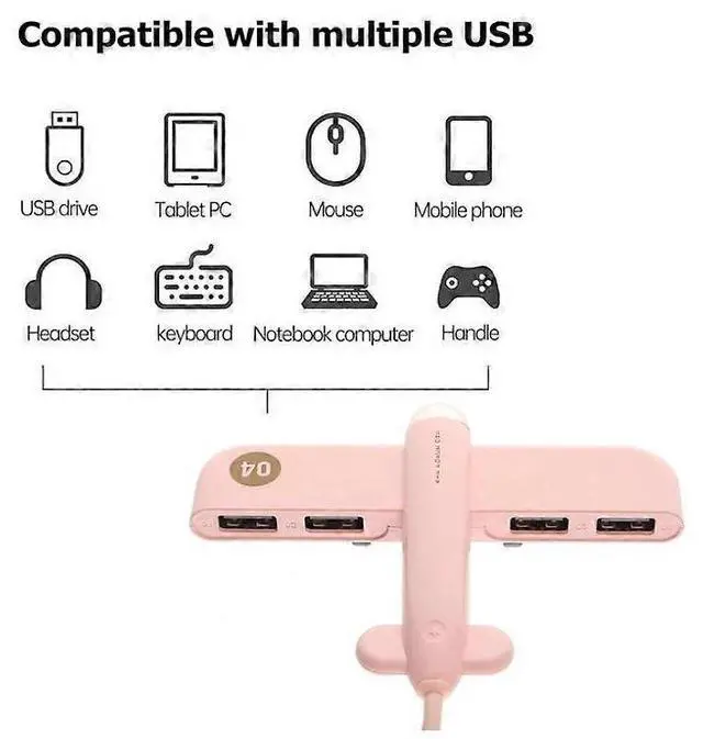 Upgrade your connectivity with this stylish pink 4-port USB hub featuring a unique airplane design. Perfect for home, office, or travel use to expand your laptop or desktop capabilities.