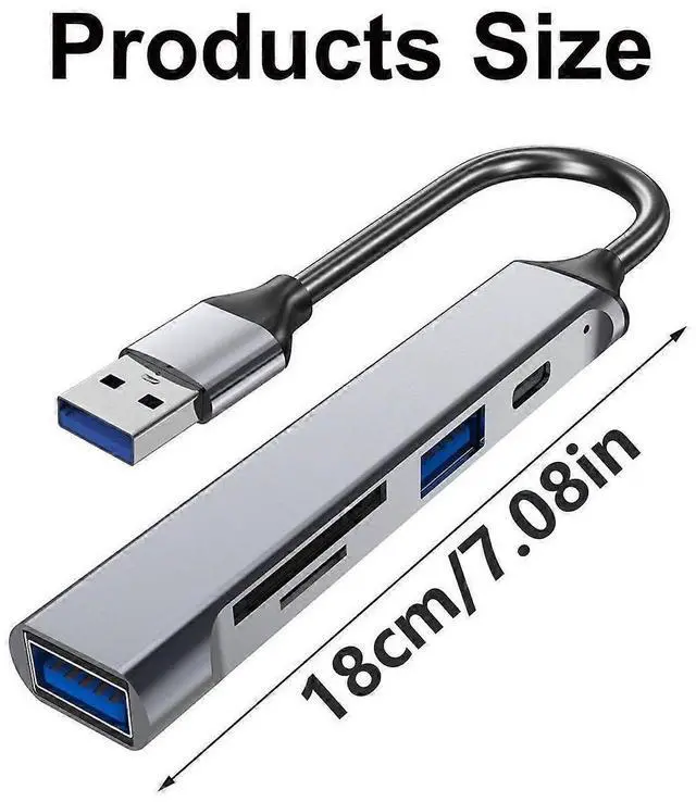 5-in-1 functionality with USB-C, USB 3.0, USB 2.0, and card reader slots