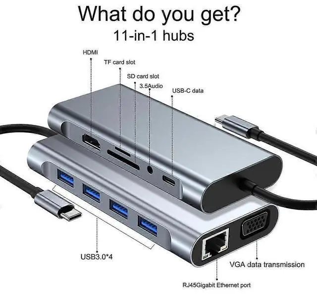 Expand your connectivity with the DHTtechky 11-in-1 USB C Hub, designed for seamless integration with MacBook, Chromebooks, and Type-C devices.