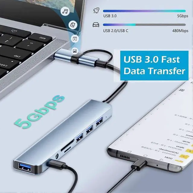 Upgrade your laptop connectivity with this versatile USB-C hub featuring heat-reduced design and fast data transfer.