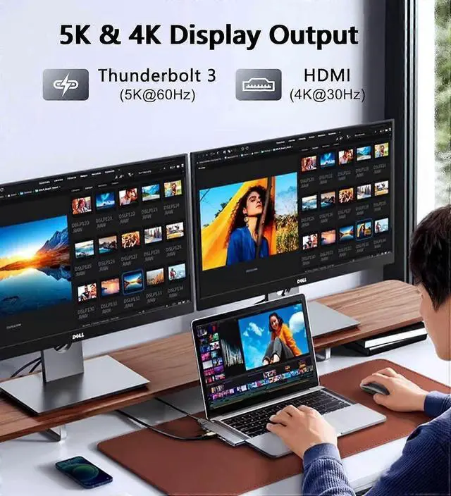 - **Ultra-Fast Thunderbolt 3 Port**: Supports 40Gbps data transfer, 5K@60Hz video/audio output, and 100W pass-through charging.