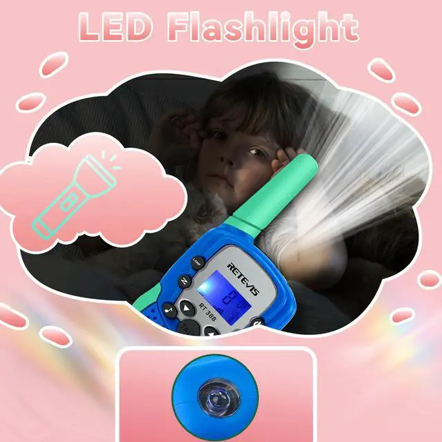 Gentle touch on the side key to turn on the flashlight, Retevis RT388 walkie talkie help children to get more fun at dark