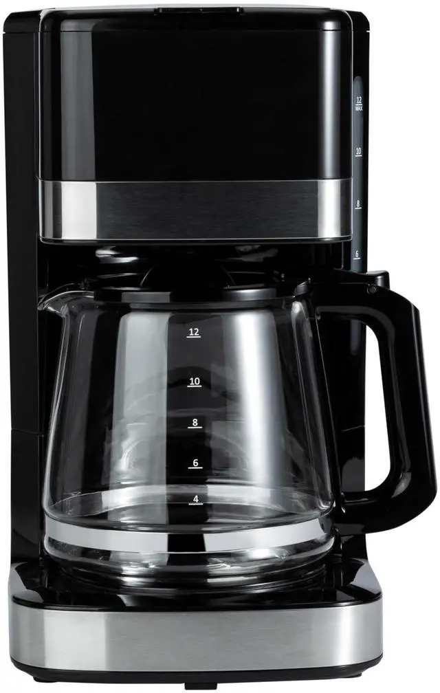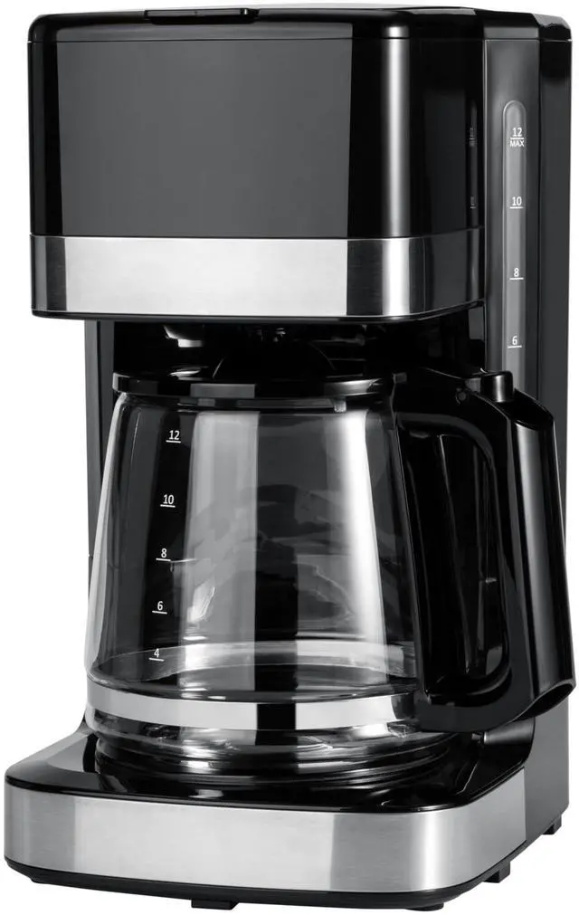 12 Cup Drip Coffee Maker with Glass Carafe (1.9 Qt), Auto Shut-off, Auto Pause, Removable Filter Basket, Black & Silver