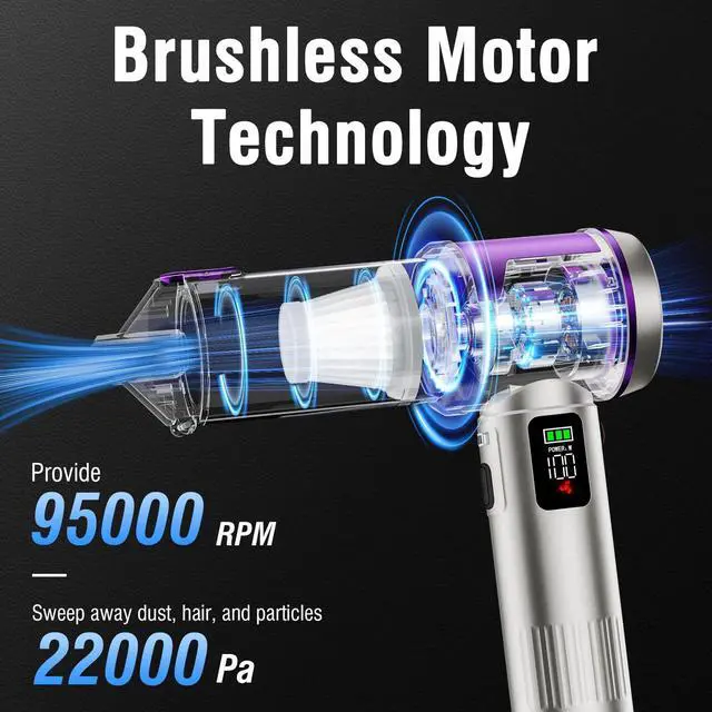 High Power Suction: This Kdewere handheld vacuum cordless cleaner features an upgraded brushless motor generates 22000Pa strong suction at 95,000RPM. It effortlessly removes dirt, pet hair and debris from cars, carpets and home surfaces, leaving zero dust behind