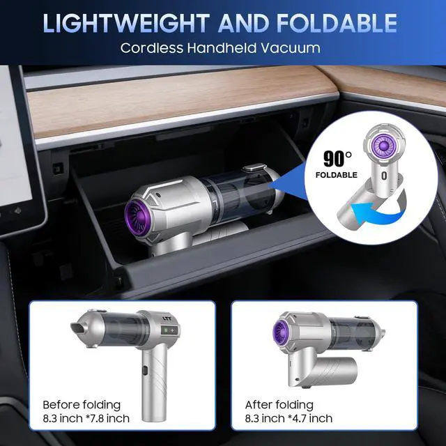 car Vacuum Portable Cordless, 18000PA Brushless Motor Hand Held Vacuum,Air Duster, 120W High Power Mini Vacuum Cleaner Foldable with LED Screen for Home, Car, Office, Pet