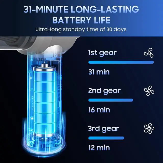 Rechargeable Battery & LED Displayhand vacuum cordless rechargeable, equiped a 6000mAh battery with a fast charging port. It can be easily charged using a car charger, mobile power, laptop, rechargeable battery, and other methods. LED display can show you the current battery level and working mode. This reusable vacuum cleaner is a perfect replacement for compressed air canisters and is environmentally friendly and energy-efficient.