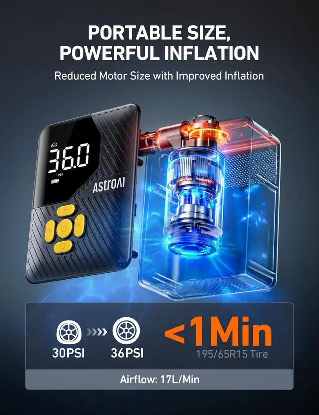 3-MODE FLASHLIGHT: The built-in three-mode flashlight (flashlight, strobe, and SOS) will light up the night and bail you out of trouble. The strobe mode signals alarm and emergency, while the SOS mode indicates danger. The L7 Mini works as a tire inflator and a safety keeper.