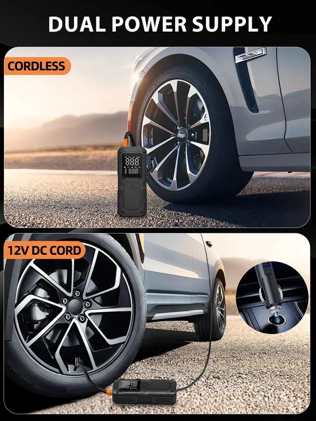 Superior Protection & Reliable Power Anywhere: Built with premium safety features to guard against overcharging, short circuits, and overheating, the AIRSURE air compressor for car tires gives you peace of mind wherever you go. Its 6000mAh battery handles up to 20 car tires (2936 PSI) or 38 bike tires on a single charge. And if the battery runs low, simply switch to the 12V DC connectionyour backup power for any journey. Whether youre a cyclist on a mountain trail or a parent on a road trip, cordless tire inflator keeps you away from flat tire stress