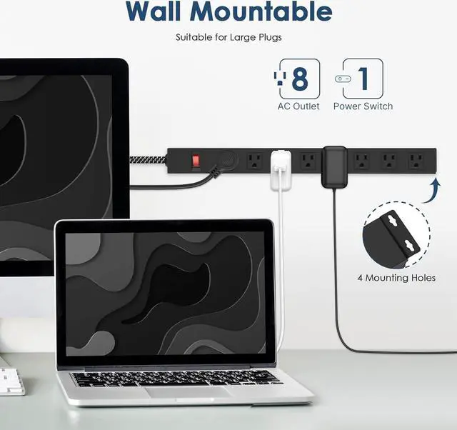 Easy Wall MountingFeaturing 4 screw holes at the back, this wall mount power strip can be easily mounted to any desired location. Whether in your office, living room, or garage, it provides flexible and convenient access to power sources.