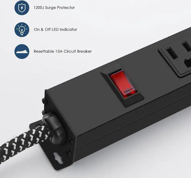 Extra ProtectionEquipped with a 15 amp circuit breaker power switch and a built-in 1200J surge protector, this long power strip provides comprehensive protection for your valuable appliances. Its impact-resistant aluminum body ensures long-term reliable performance.