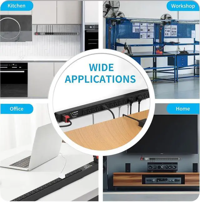 [Ideal Usage Environments] The Apislogik desktop power surge protector strip perfect for homes, offices, small Data Centers, workspaces, small workshops, garages, industrial spaces, or any place requiring reliable multi-device power.