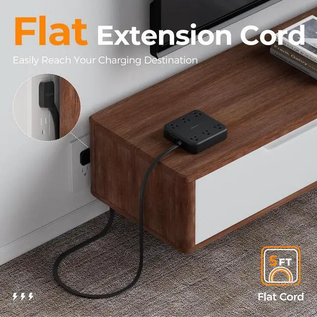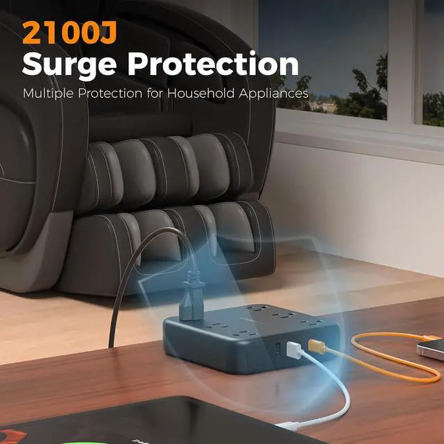 2100J Surge Protector Outlet: This power strips with surge protection protects your devices, such as computers, desk accessories, and other electrical appliances, from power surges and spikes, providing you with a safe and reliable charging environment