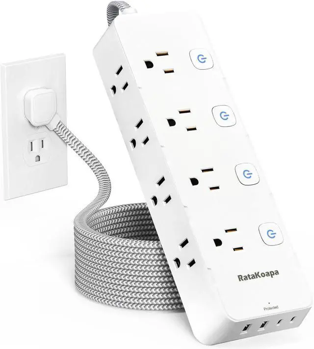 10 Ft Braided Extension Cord: This 10 ft flat extension cord is perfect for reaching distant outlets, it provides flexibility regarding where to place the power strip. In addition, the braided power cord resists deformation, is highly durable, and is safer