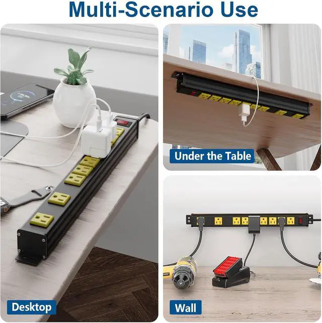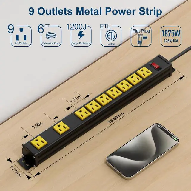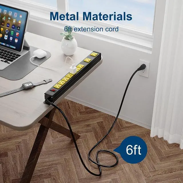 Metal Power Strip: Sturdy construction with thick aluminum metal housing, High-density PVC power cord features a durable wire, copper Rated at 1875W / 15A / 125V