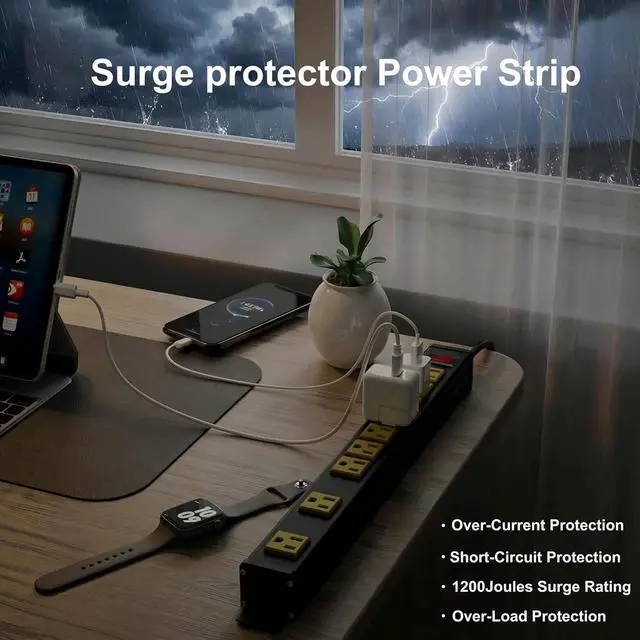 Auto Shut-Off Safety: Features 1200 joules of surge protection to help protect connected devices, along with a 15A resettable circuit breaker that provides overload protection to help prevent overheating and overload