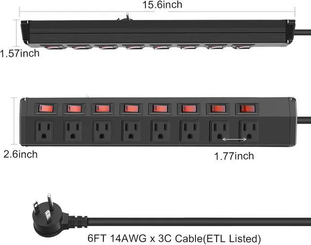 Safety and Durability: Crafted from extra thick aluminum alloy, this heavy duty power strip offers extremely strong wear resistance, fire protection and impact prevention. Perfect for garage, workshop, office, home, school, etc.
