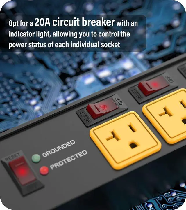 12 gauge 6ft heavy duty extension cord. Each outlet is equipped with an independent 20-amp circuit breaker, enabling autonomous circuit controleliminating the need to unplug devices or cut off the main power supply.