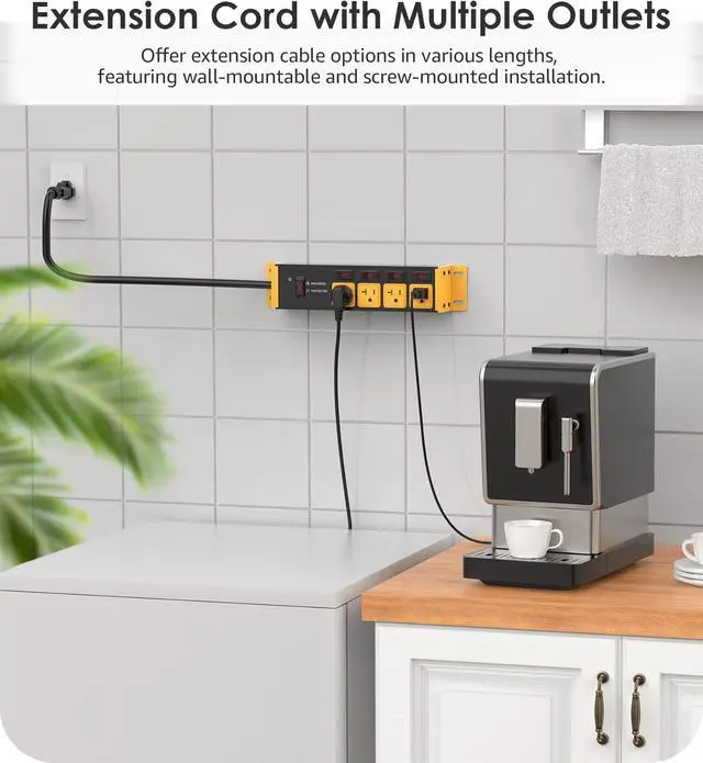 Wall screw mount design, sturdy and durable, ETL list 5019543, thickened metal shell, fireproof, well made power strip and great for a workshop garage shop, Please protect if used as outdoor power strip.