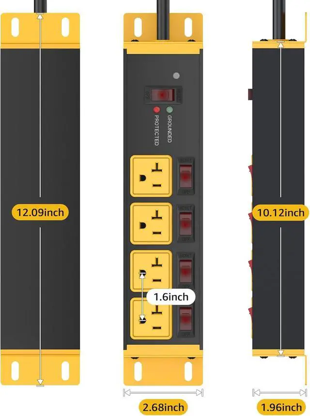 Garage workshop industrial power strip surge protector with grounding, surge protection indicator light, 4800J enough for larger surges, and ensure the safety of connected devices. Provide four wide-spaced sockets.