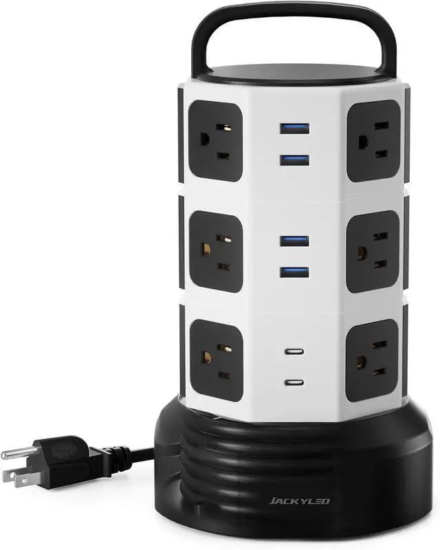 2 USB-C & 4 USB-A Charging PortsTired of searching for adapters when the phone battery is low? With 2 USB-C ports and 4 USB-A ports, JACKYLED USB power strip tower is here to simplify your charging needs. The inbuilt smart charging technology empowers the USBs to intelligently detect your electronic devices and charge them at optimal yet safe speedscompatible with most USB devices. (Total