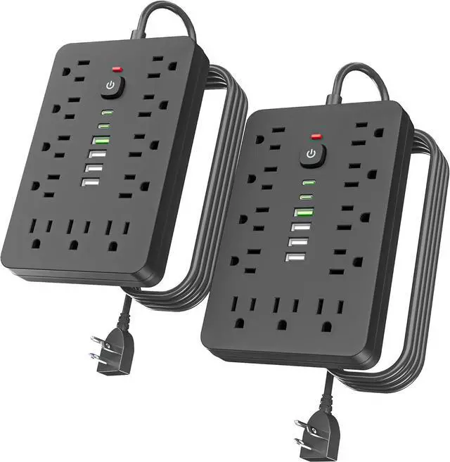 Intelligent USB Charging- Streamline your charging setup with this surge protector featuring smart USB port technology. Equipped with 4 USB-A and 2 USB-C ports (Max 12W/ 2.4A ), it ensures optimized charging for smartphones, game consoles, eliminating the need for bulky USB chargers.