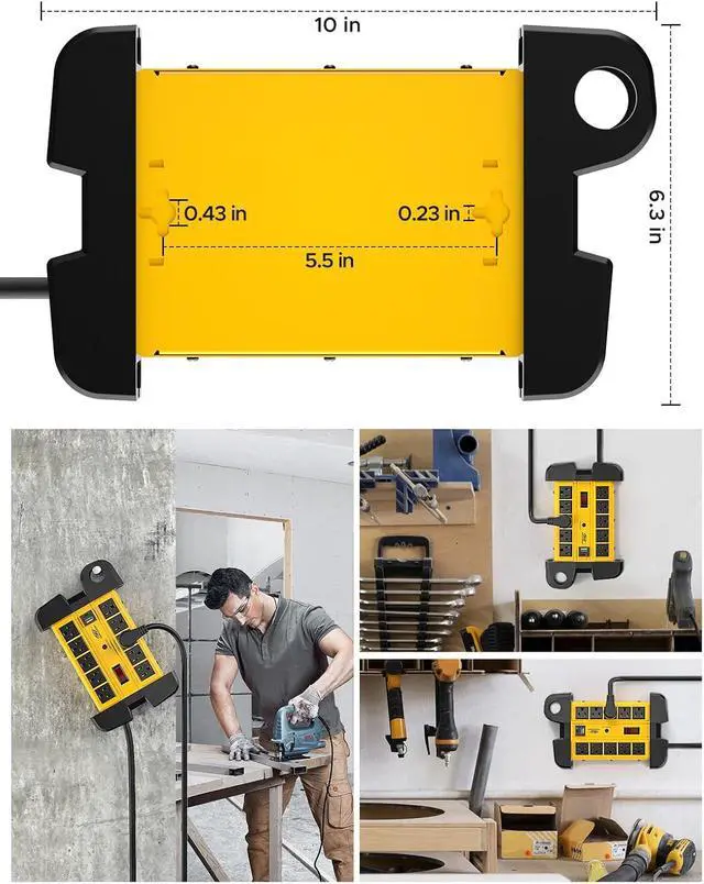 [Wall mountable&Cord Management] Design with cord holder for wrapping the cord or hanging on, two mounting keyholes on the back, mount metal power strip on the wall to provide easy access for electrical tooling, compact shape makes it available mount to the workbench or under a desk.