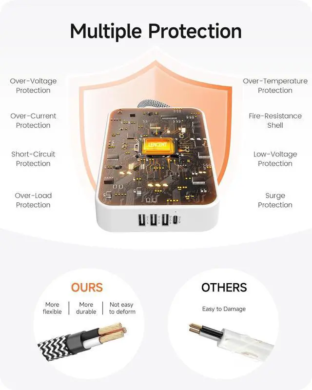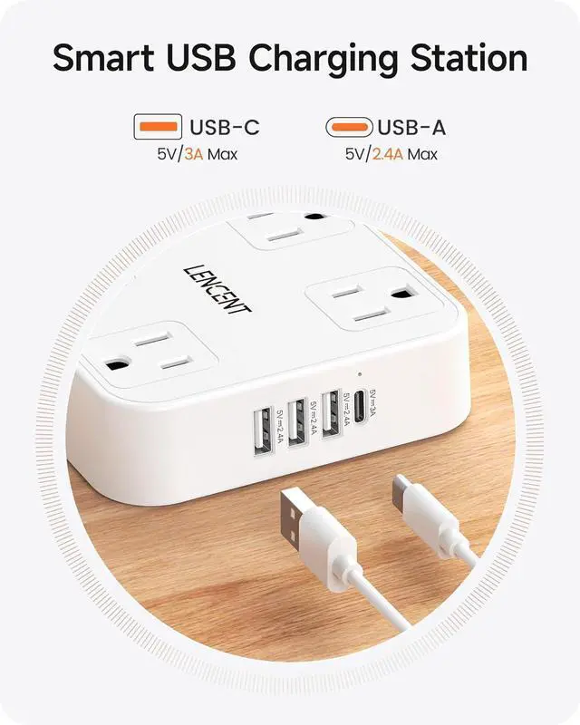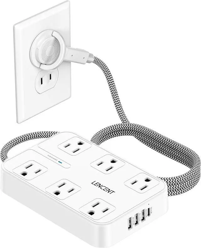 10-in-1 Power Strip with USB Ports: The 2 prong power strip with 6 AC outlets (1625W Max), 3 USB-A(5V/ 2.4A 12W Max) and 1 USB-C(5V/3A 15W Max) ports can safely charge up to 10 devices from a single small wall charging unit. The USB ports will automatically detect devices and deliver the optimal charging current to meet your various charging needs. Compatible with mobile phone, tablet, laptop, camera, e-readers and more