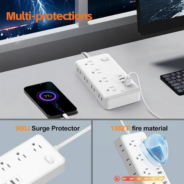 Overload & short-circuit protection Over-voltage/current prevention Fire-resistant casing (1382°F tolerance)Stable grounding & heat dissipation Rigorously tested to meet U. S. safety standards, this power strip is your reliable defense against electrical hazardsat home, in the office, or on the go.